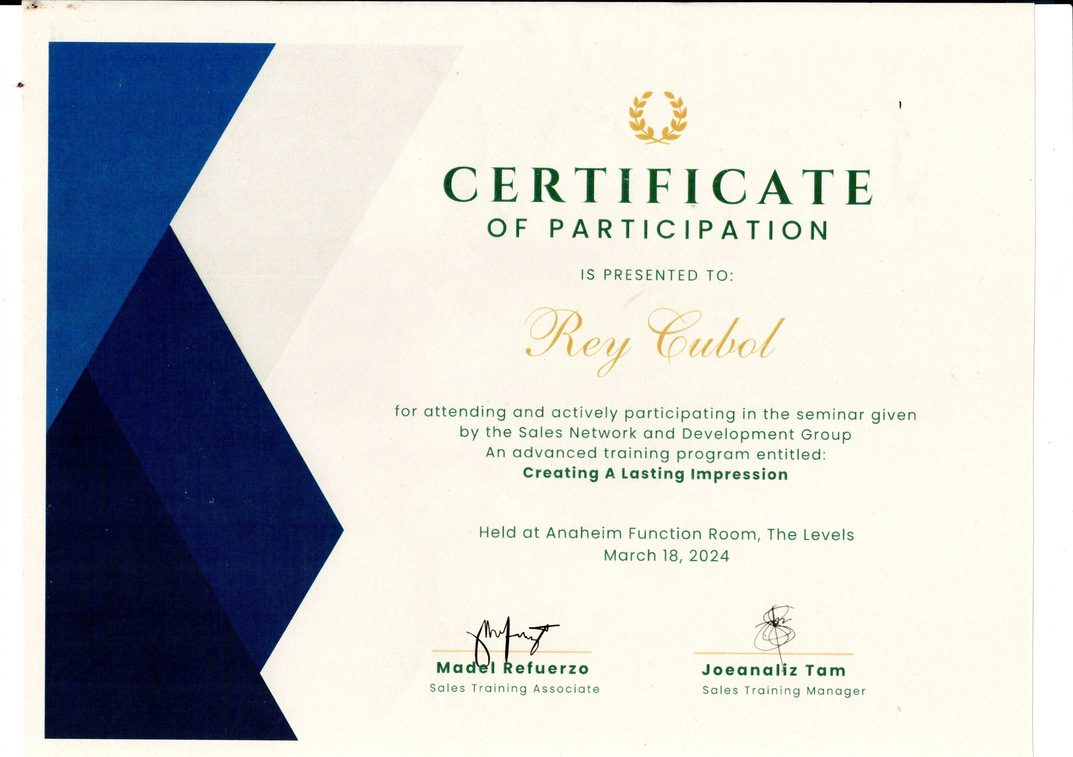 Training and Certificates